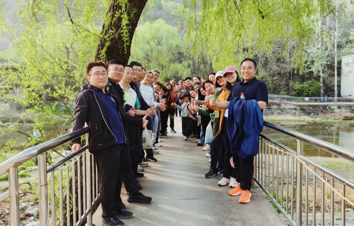 生日会结束后,教师们沿神堂峪滨水绿道徒步前行。全长7.58公里的亲水木栈道蜿蜒于雁栖河畔,青山叠翠,溪水潺潺,春日里柳绿花红,十八处景观节点藏着野趣与诗意。大家结伴而行,欣赏山间清泉、古长城遗迹与“石瀑”奇观;或驻足拍照,或临溪小憩,在富含负氧离子的清新空气中放松身心,感受京郊生态之美。行走于青山绿水间,大家进一步激发了热爱生活、热爱自然的情怀,也为后续以更饱满的热情投入工作积蓄了能量。